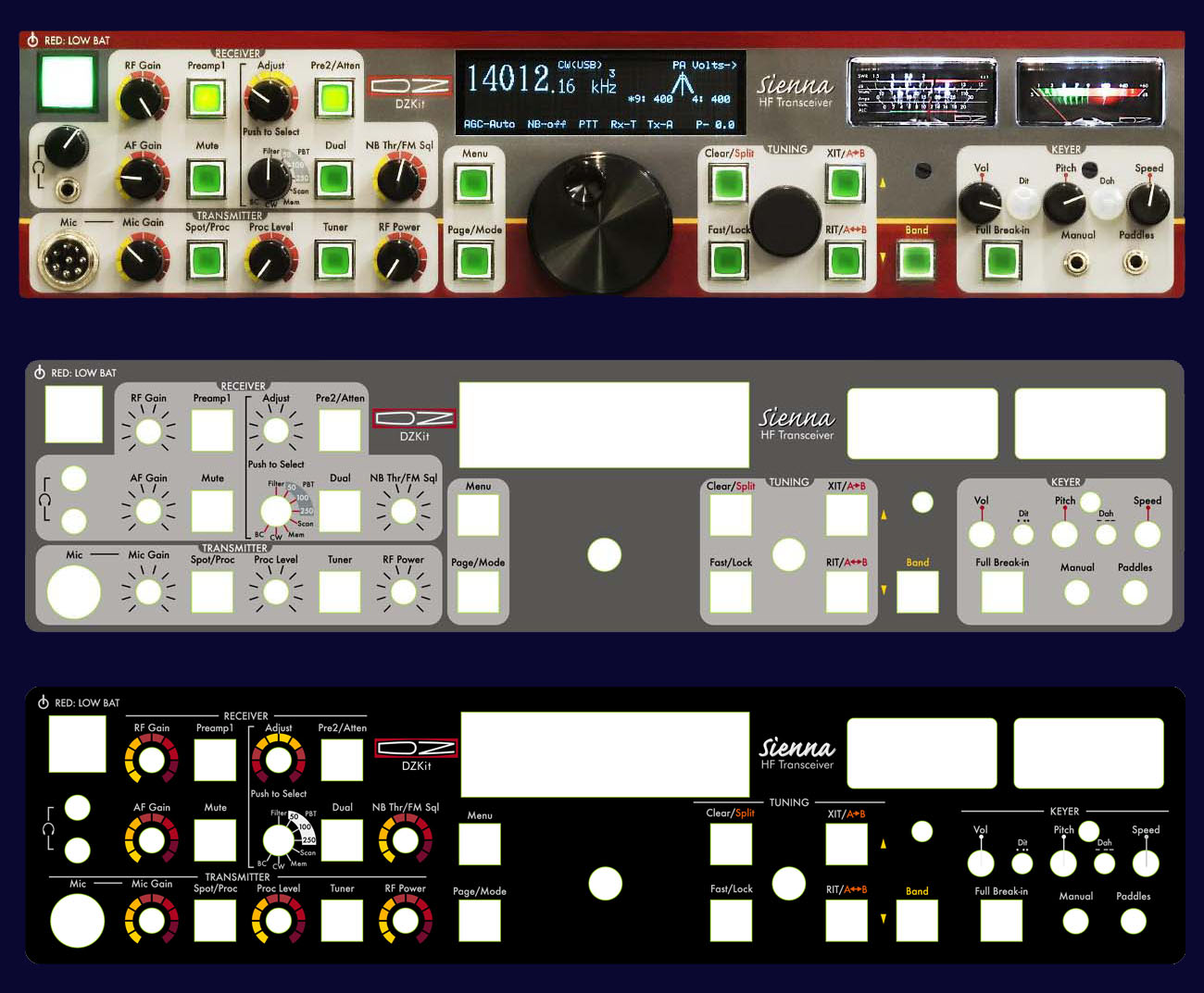 Customize your Sienna appearance by choosing from three front panel color styles, three keycaps and four LED colors: